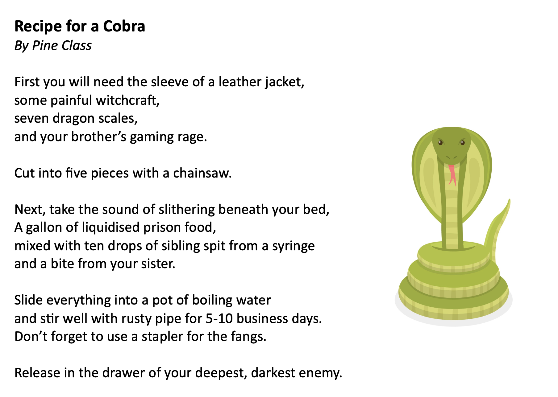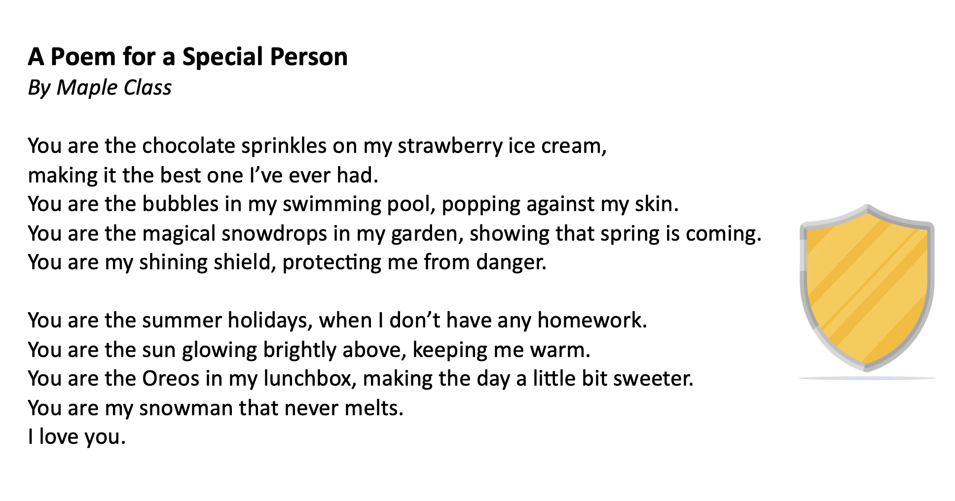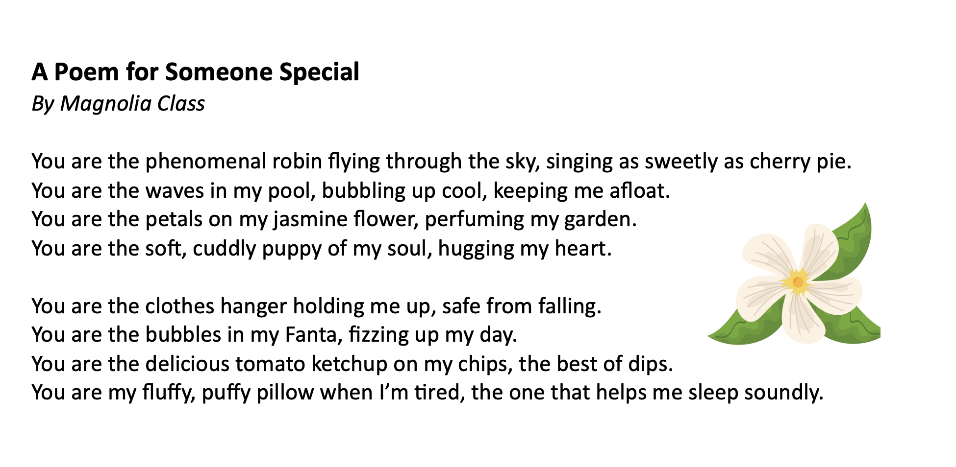 What a fun time I had at Commonswood Primary School and Nursery over two days. The excitement was palpable in assembly, not least when a teacher dressed as a dinosaur walked in! How could a poet compare to that? However, it turned out that Commonswood is chockablock with budding poets, from the best-listening nursery class ever, all the way up to year 6. Here are the wonderful poems for someone special written by years 3 and 4, and creative recipe poems from years 5 and 6.